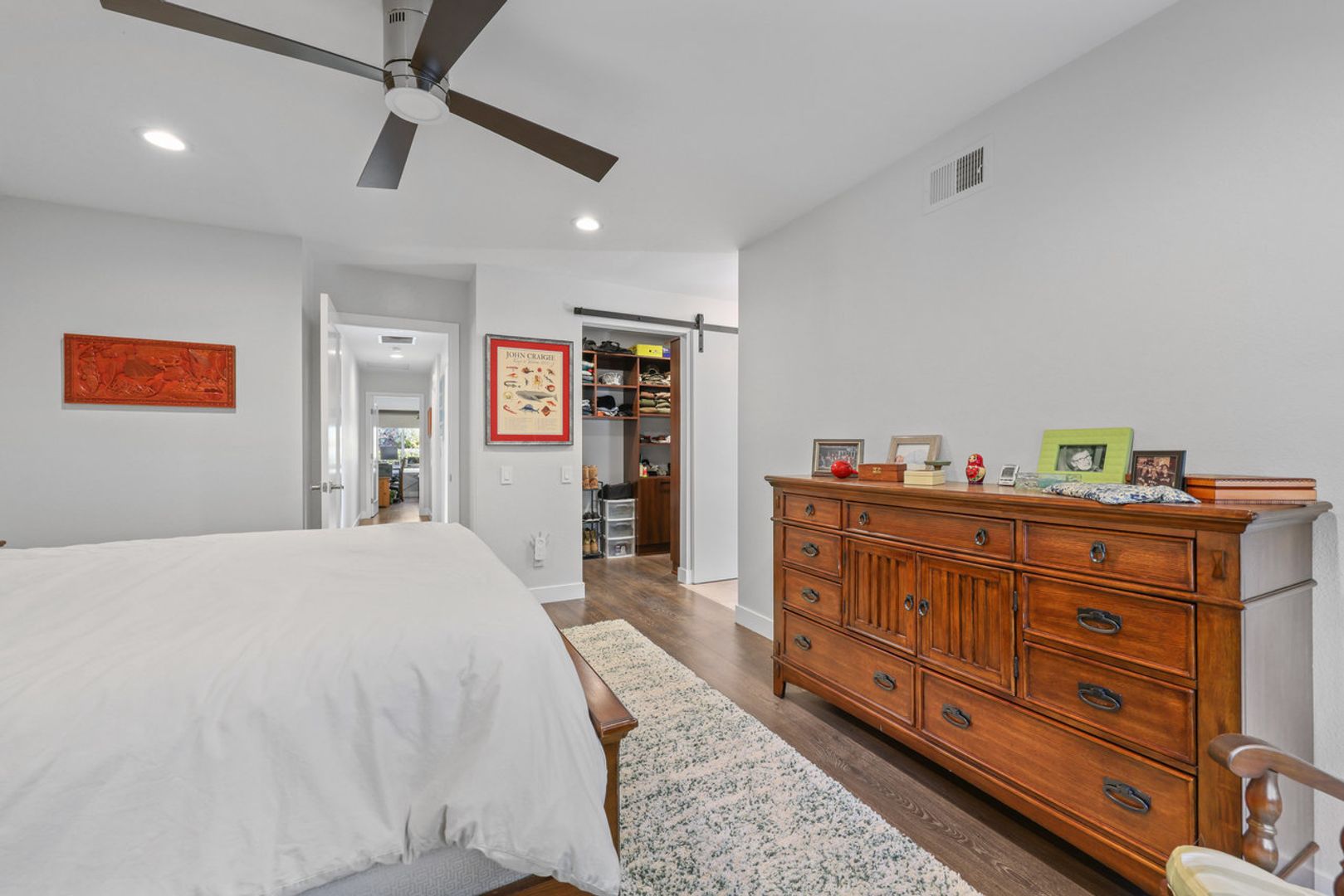 Enjoy the Oceanside lifestyle in this meticulously upgraded 3BD/2BA single level detached home on a quiet cul de sac. Bright, open floor plan with tons of natural light. Laminate and tile flooring throughout. Living room fireplace plus a unique office niche. Custom kitchen with stainless Kitchen Aid appliances, gas range, built-in wall oven and microwave. Spacious primary bedroom has barn doors to walk-in closet, elegant shower and dual sink vanity. Serene, sunny backyard with welcoming patio, low maintenance turf, outdoor shower and lots of privacy. Finished 2-car garage with front loading washer & dryer and parking for additional cars in driveway. Conveniently located near popular beaches, restaurants, shopping, schools and freeway access. This property is truly a rare find! Rent includes Fridge, Washer, Dryer and landscape maintenance. Tenant is responsible for all other utilities and services. No Smoking, No Pets, No A/C. Email for showing schedule. Do Not Disturb Current Occupants. Available for lease, minimum 12-months. Move-in requirements: First month’s rent, $4,800 Security Deposit, Proof of Renter's Insurance and $50 application fee per adult occupant. Credit Score of 680 or better plus documented income required. Virtual Tour link: https://my.matterport.com/show/?m=GxikBcMdTT5